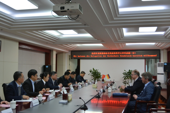 3月13日,党委副书记、校长任永在行政楼九楼东会议室会见奥斯纳布吕克应用科学大学亨德里克·拉克勒、诺伯特·巴尔曼、马蒂亚斯·瑞克茨格尔一行,会谈由党委委员、副校长王晓峰主持。