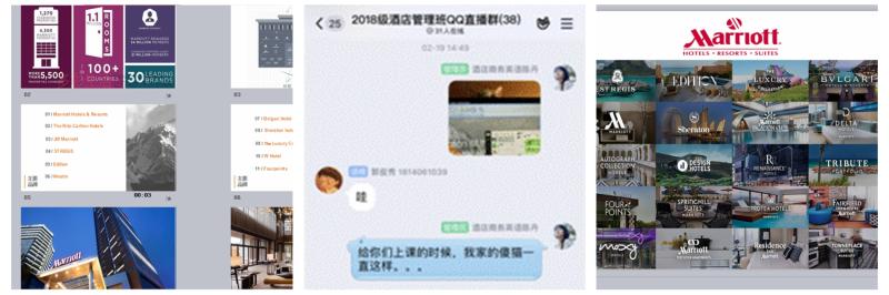 一、备课环节。1、PPT课件的升级优化。采用QQ网络直播,通过分享屏幕的方式,结合语音教学来进行。将PPT课件进行优化,采用较为丰富的色彩搭配,并添加海量的高像素图片,提升课件的美观度和清晰度,让学生产生耳目一新的感觉。课程内容增加疫情时期的相关行业信息。2、吸收更新信息,在常规的教学内容之外,插入最新的行业信息和数据,比如Shangri-la酒店集团在疫情期间,在英文官网上做出了何种相关疫情的工作及服务,拓展学生视野,将知识融会贯通。