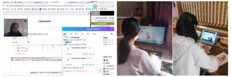一、统一方案。在线教学任务下达后,四位老师立即行动,在课程组长张家锐老师统一组织协调下,不到一周的时间内,充分讨论、协商,发挥各自的优势,全面完成了线上教学的课前教学设计工作,包括:掌握49名参加学习同学情况、制定线上教学工作方案、选择线上教学环境、设计课题任务书、设计过程文档格式规范、划分课程单元等。同时,建立学习通课程网站,提前一周上传相关课程资料,供学生下载预习,指导老师内部演练。
