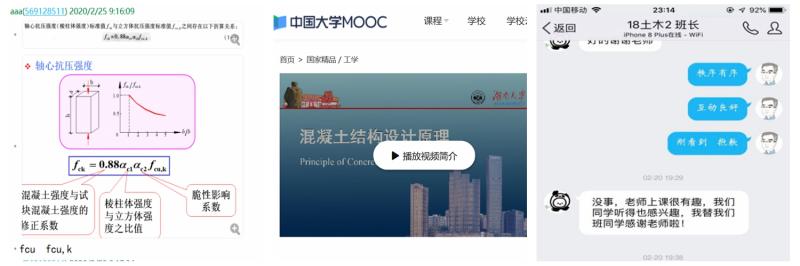 每次课程会精选两到三个重要知识点,让学生观看慕课资源视频,视频中包含我们不具备的一些试验图片、动画以及大师们的深入讲解。视频学习后,通过事先建立的课程QQ群,开展教学直播,以课程PPT为载体重点解释本次课中重点知识点,与慕课视频进行呼应。40分钟的直播讲解主要讲解重要知识点,前后知识的联系以及与其他课程的交叉关系;讨论、提问环节中可以通过学生的发言了解学生掌握深度,及时调整授课内容,也通过激烈的讨论激发学生的学习兴趣,促进师生交流。