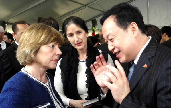 Anschließend führte Bundespräsident Gauck ein Gespräch mit Herrn Cai. Dieser beschrieb dem Bundespräsidenten die 31 jährige Zusammenarbeit zwischen der Universität Hefei und den deutschen Universitäten, wie auch den Besuch von Bundeskanzlerin Merkel und Premierminister Li Keqiang. Außerdem wurde auch der Aufbau der Modelleinrichtung der Bildungskooperation zwischen China und Deutschlandthematisiert. In seiner Reaktion darauf brachte Bundespräsident Gauck seine Hoffnung zum Ausdruck, dass die Universität Hefei auf Dauer mehr Beiträge zur Kooperation zwischen chinesischen und deutschen Universitäten leisten könne. Ferner wünschte er dem Aufbau der Modelleinrichtung der Bildungskooperation zwischen China und Deutschland viel Erfolg.