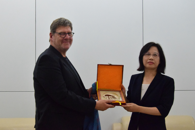 Die Präsidentin der Hefei-Universität Frau Wu Chunmei empfing die Gäste im VIP-Besprechungsraum in der Bibliothek. Sie wurden von der stellvertretenden Präsidentin Frau Chen Xiu und dem jeweiligen Leiter der Abteilung für internationale Austauschkooperation und vom Volkswagen-Institut. Beide Seiten konnten sich über die Stärkung der bilateralen Zusammenarbeit sowie den Aufbau von Volkswagen-Institut verständigen.